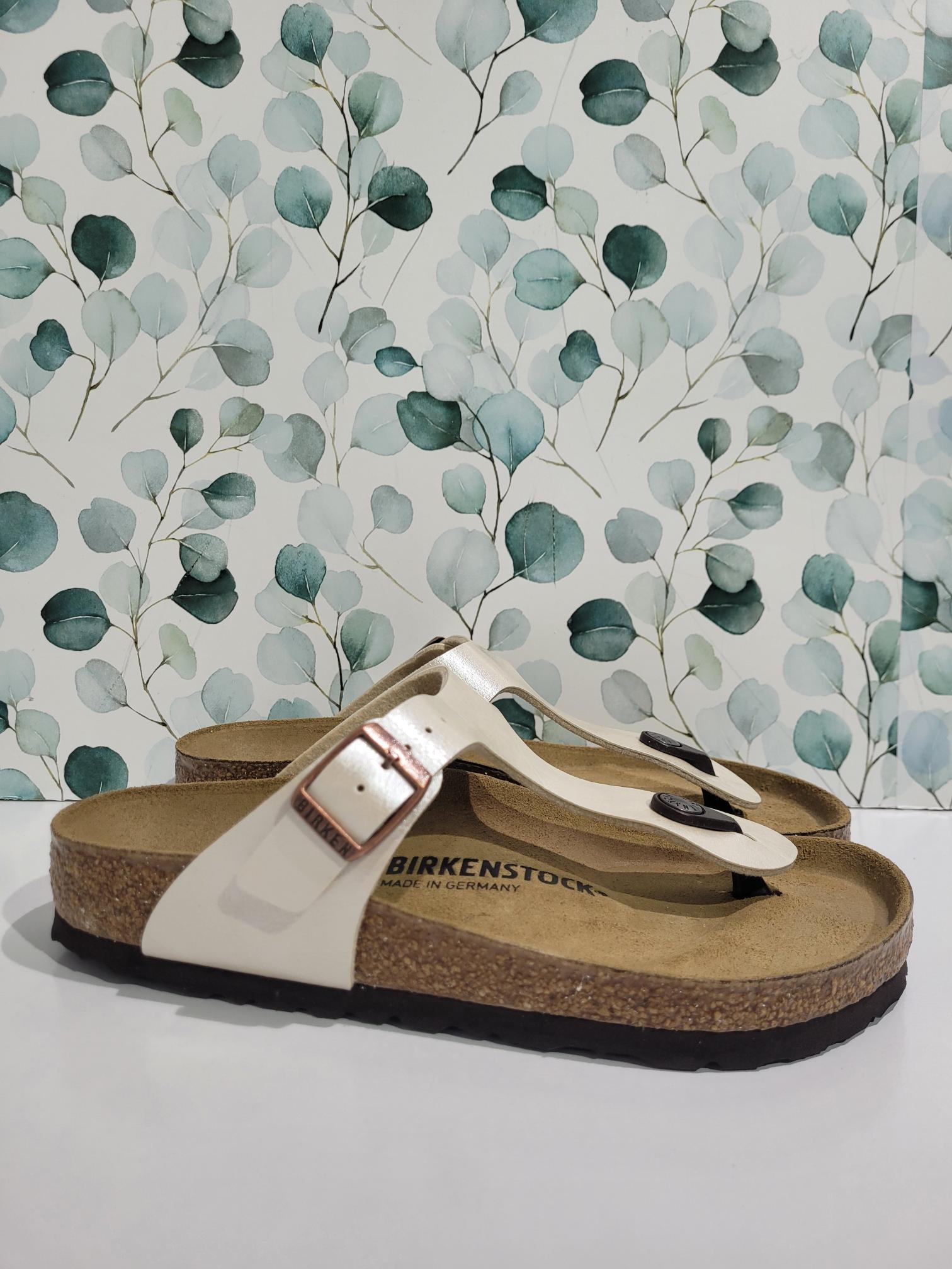 The BIRKENSTOCK Gizeh is a stylish all-rounder: extremely versatile yet unbelievably comfortable. Its design and function have remained unchanged since it was introduced in 1983, and the classic thong sandal stands out for its timeless style. Thanks to the buckle, the strap can be individually adjusted to the wearer’s feet. The anatomically shaped thong provides additional support for the toes and guides them back to their natural position.