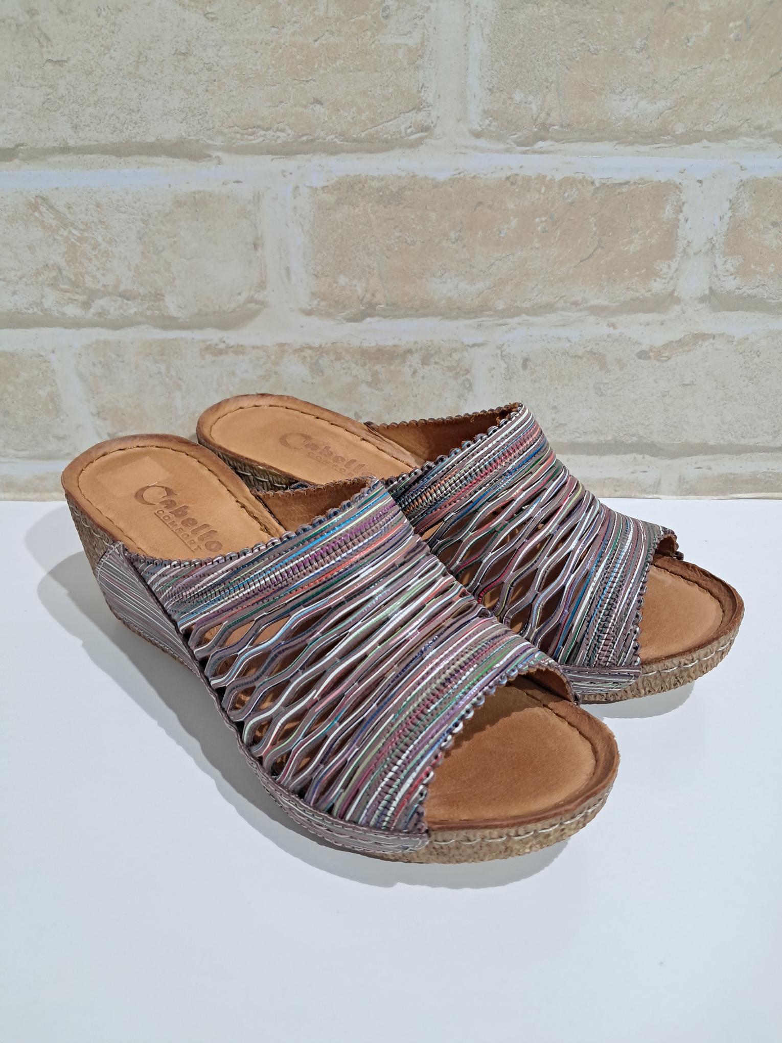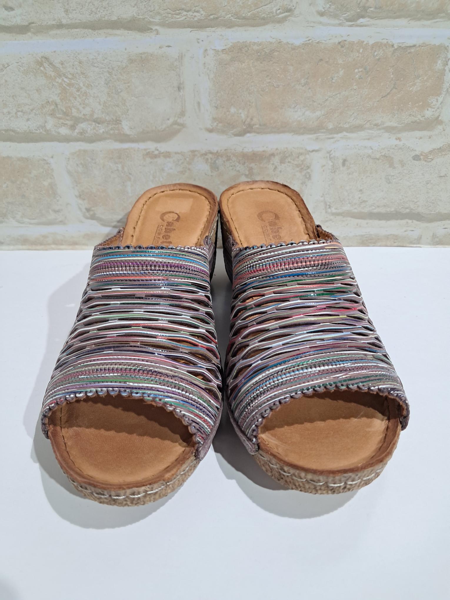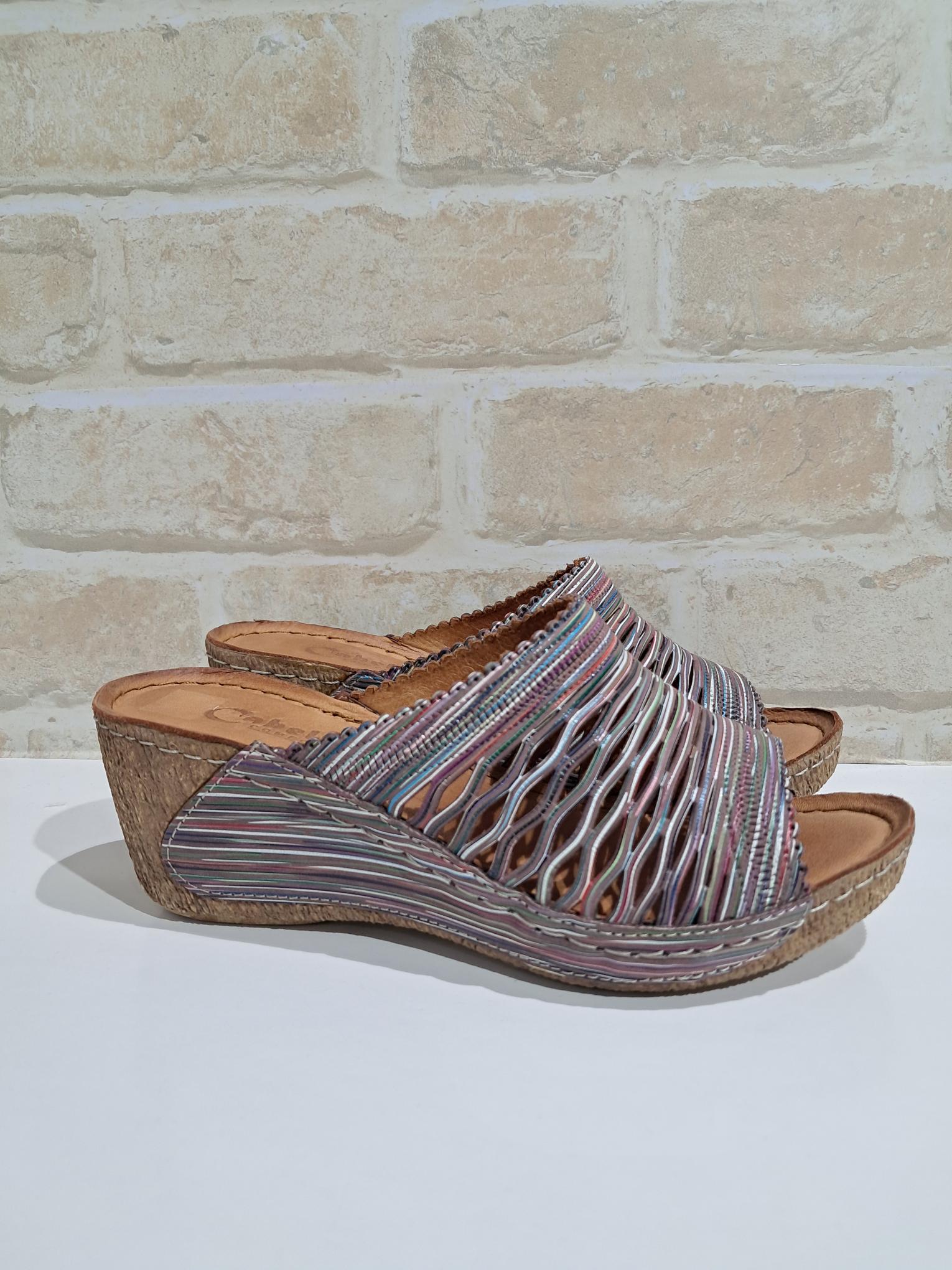 A stunning colourful wedge featuring a multi colour upper and easy slip-on design. Made from soft leathers with a comfortable footbed, the Harriet is a stylish wedge that is a must have for summer.