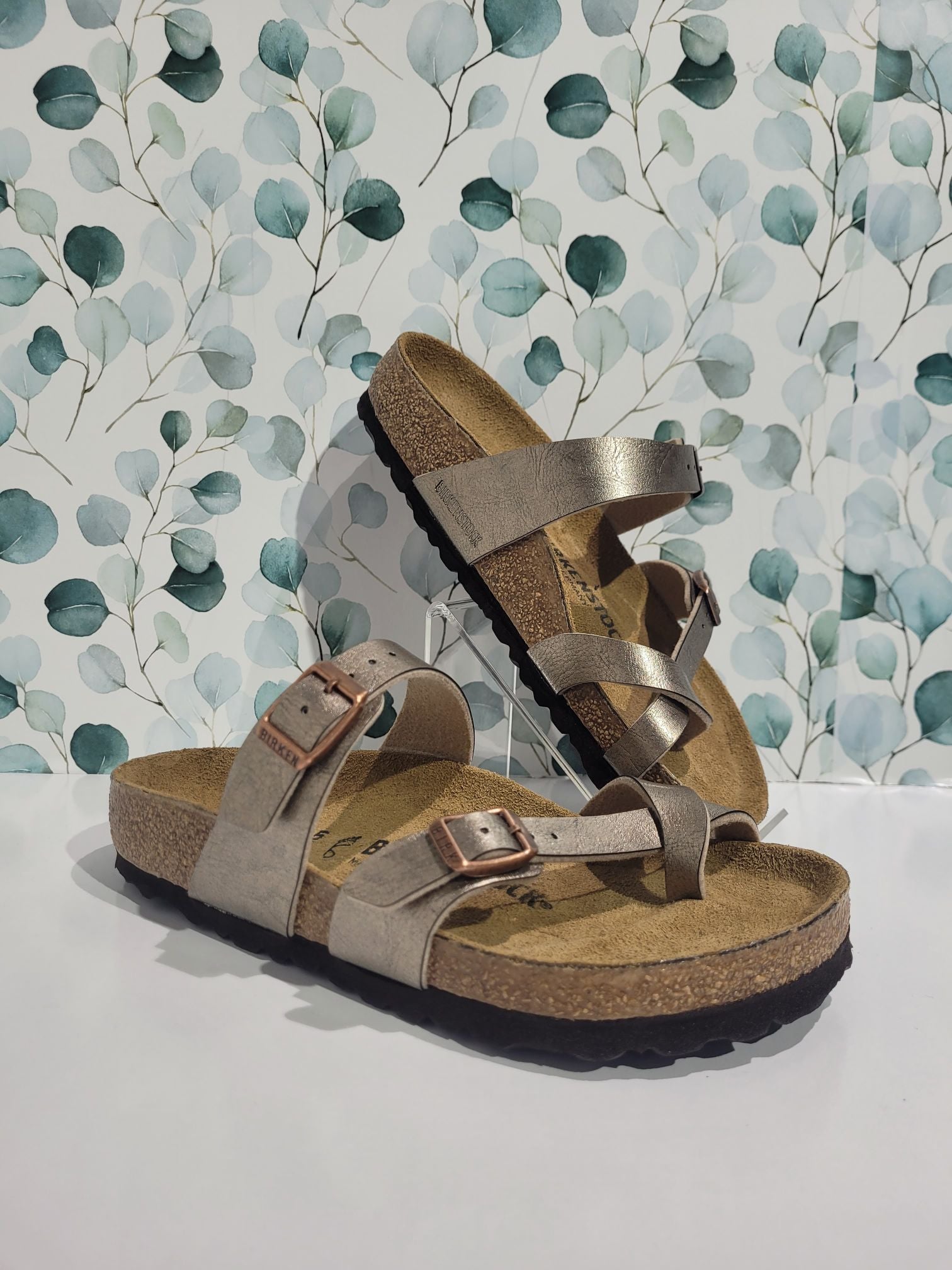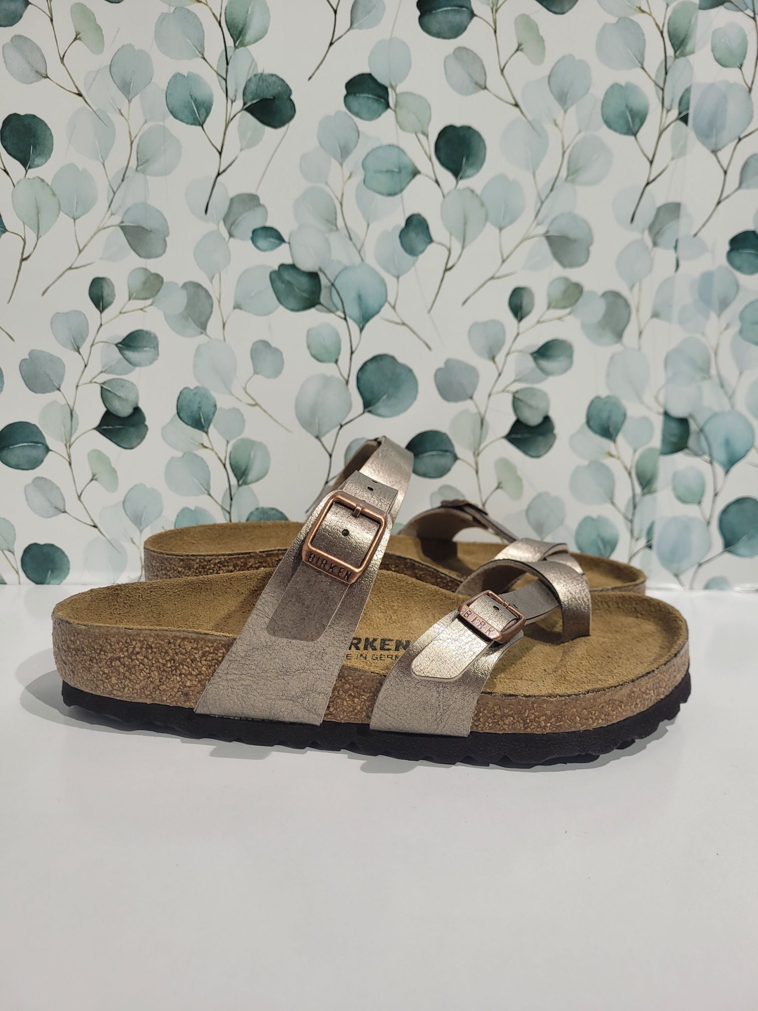 The BIRKENSTOCK Mayari thong sandal is a distinctive classic model with a toe loop and cross strap. The combination of anatomically shaped footbed and secure adjustable instep strap makes Mayari extremely wearable in a wide range of situations.