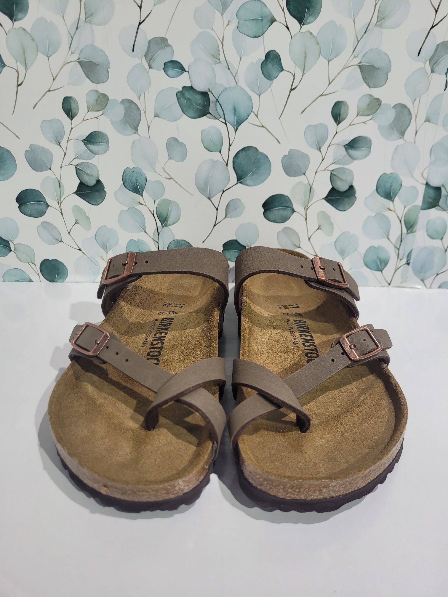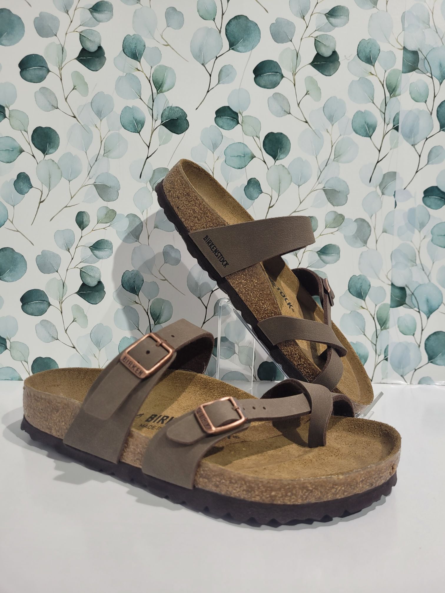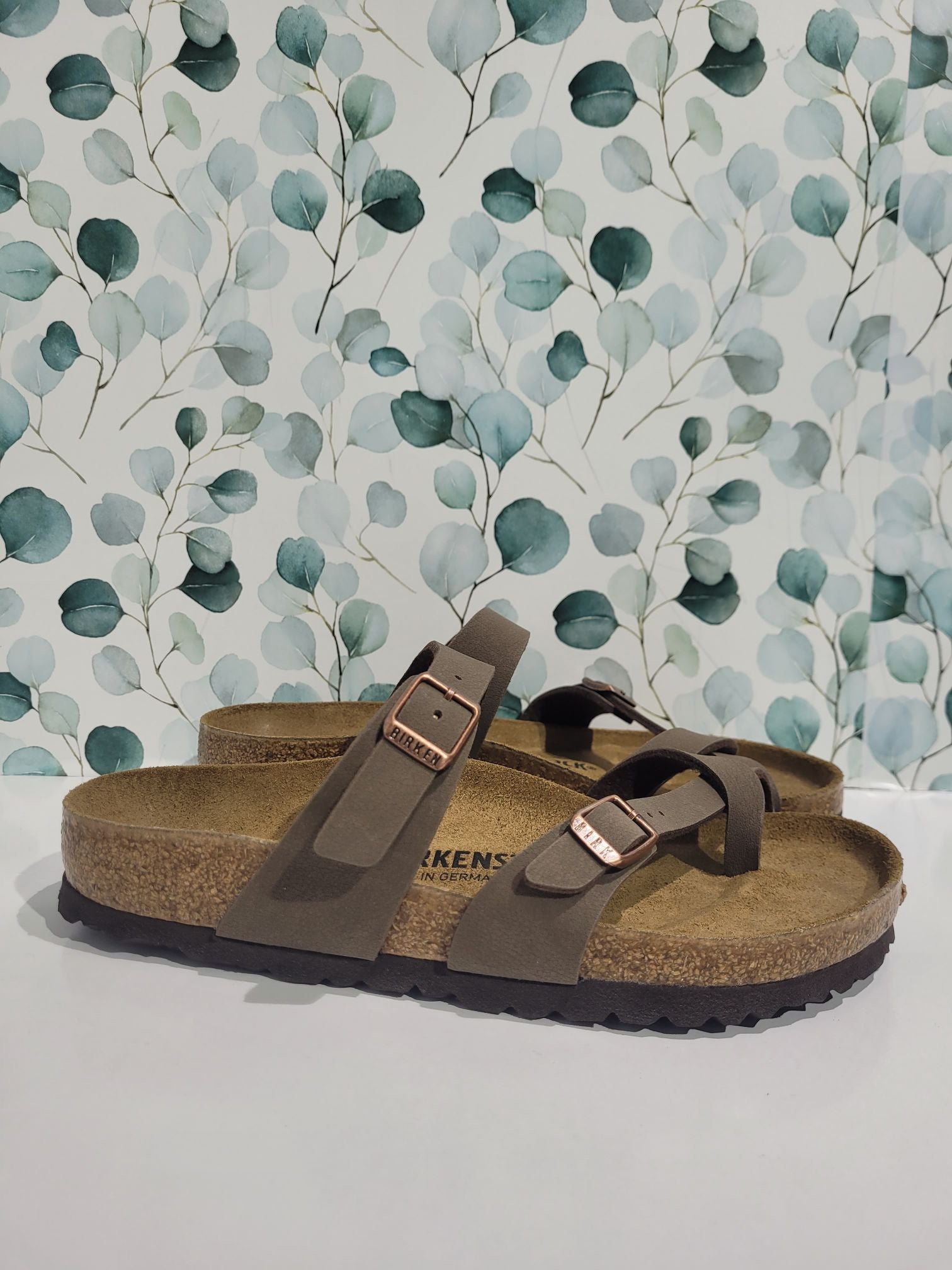 The BIRKENSTOCK Mayari thong sandal is a distinctive classic model with a toe loop and cross strap. The combination of anatomically shaped footbed and secure adjustable instep strap makes Mayari extremely wearable in a wide range of situations.