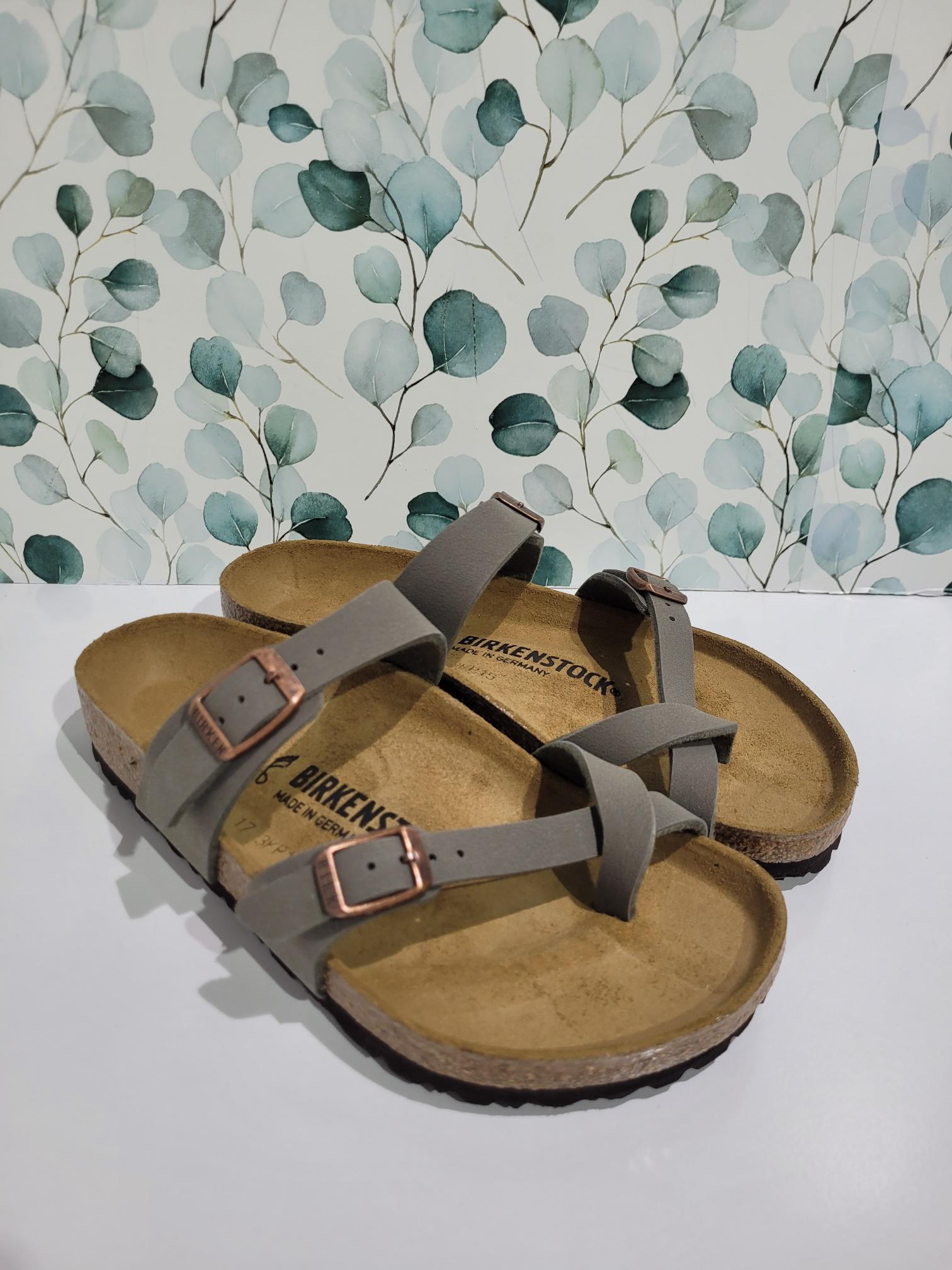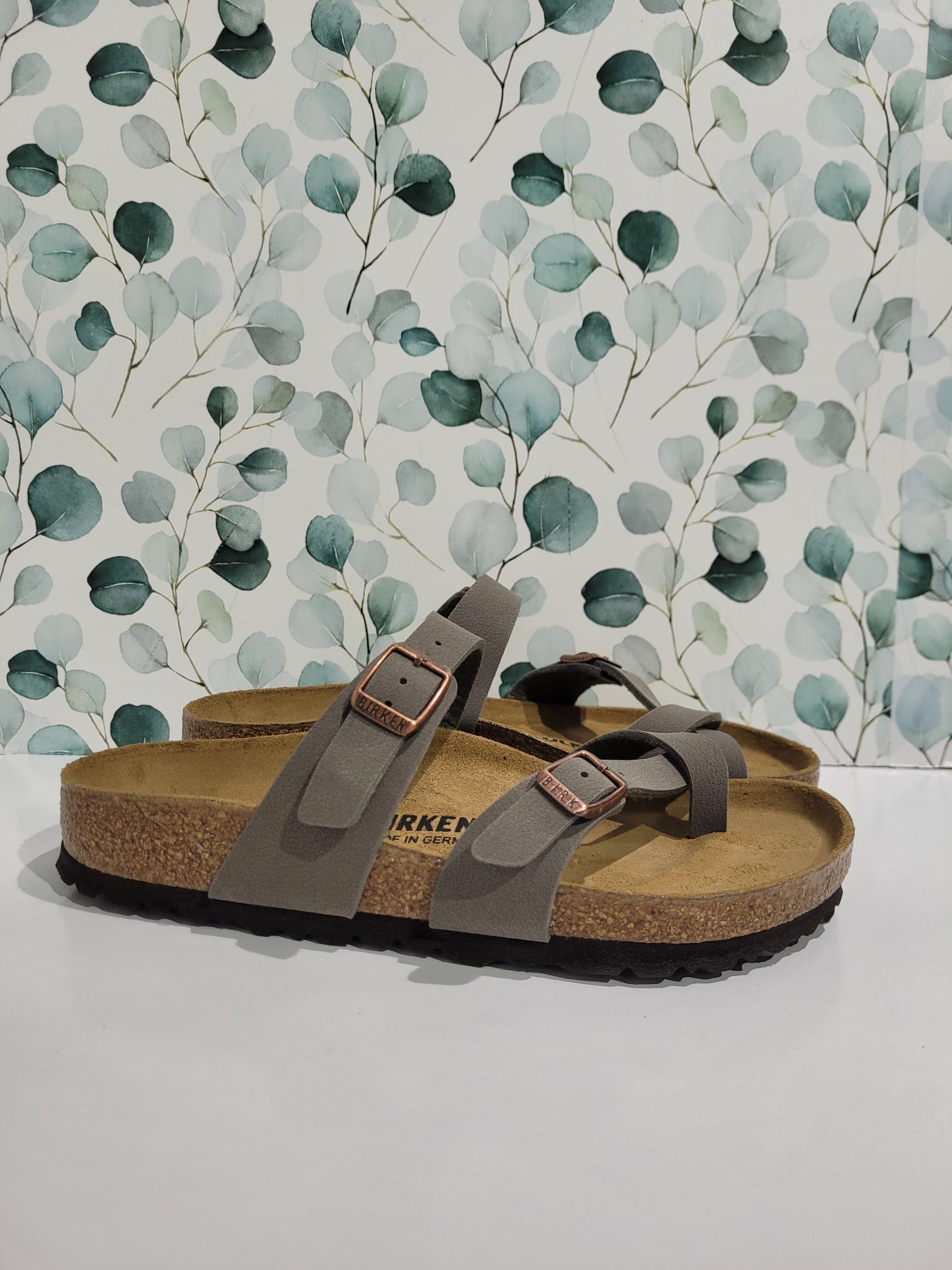The BIRKENSTOCK Mayari thong sandal is a distinctive classic model with a toe loop and cross strap. The combination of anatomically shaped footbed and secure adjustable instep strap makes Mayari extremely wearable in a wide range of situations.
