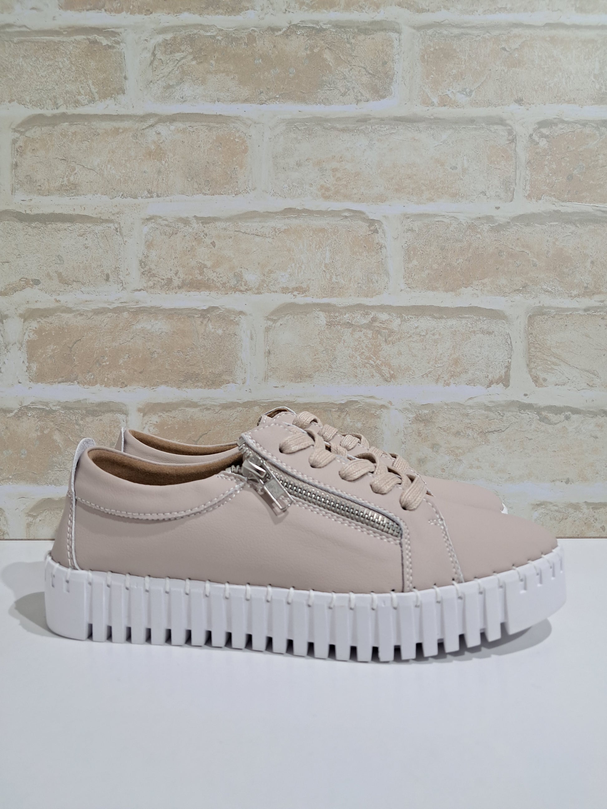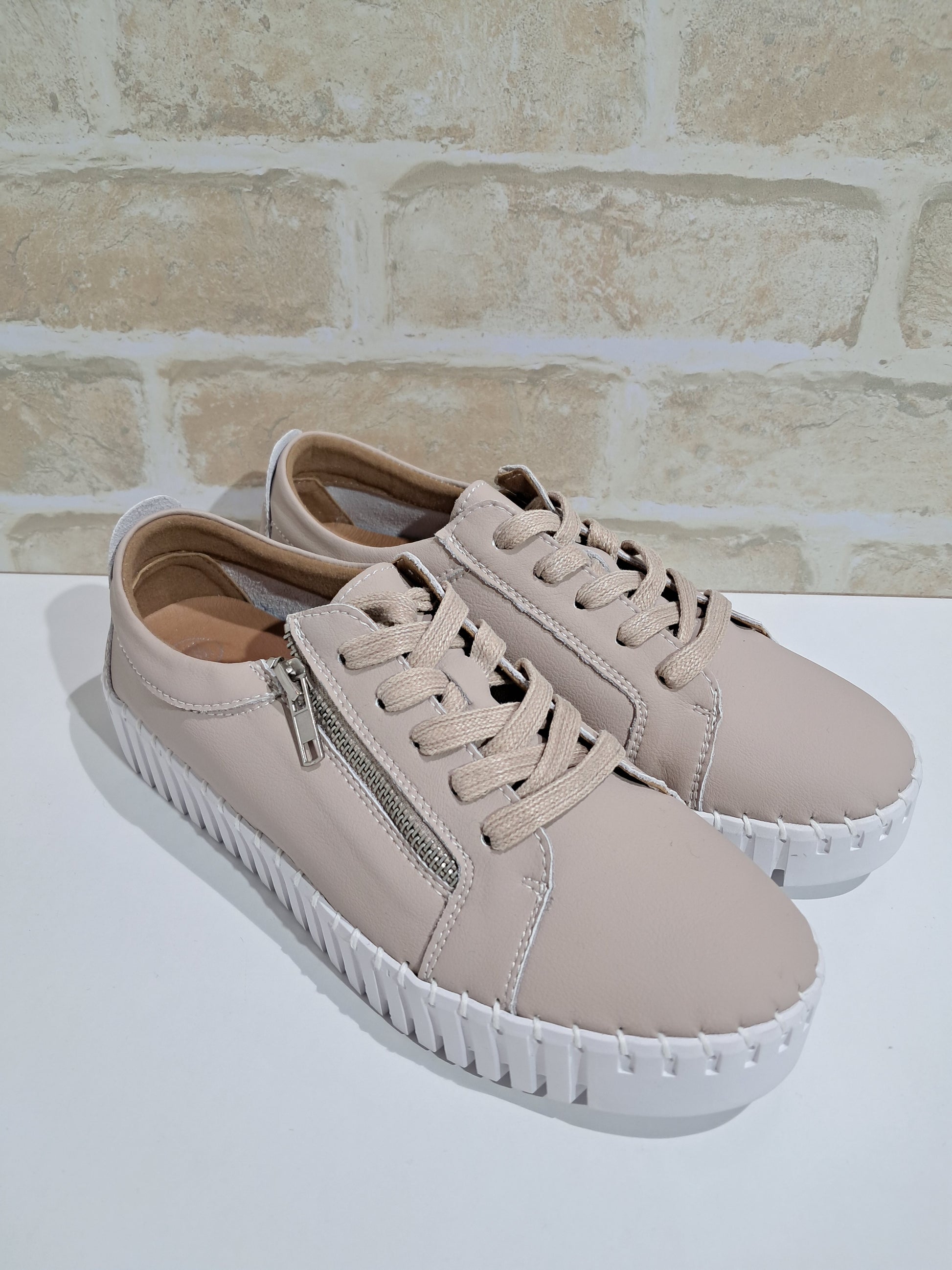 The Medusa women's sneakers from Bay Lane are the perfect combination of fashion and function. Crafted from premium leather and featuring a cleated platform sole, these shoes are designed for comfort and style. Featuring a side zipper and lace-up fastening, they'll keep you looking great and feeling comfortable all day long.