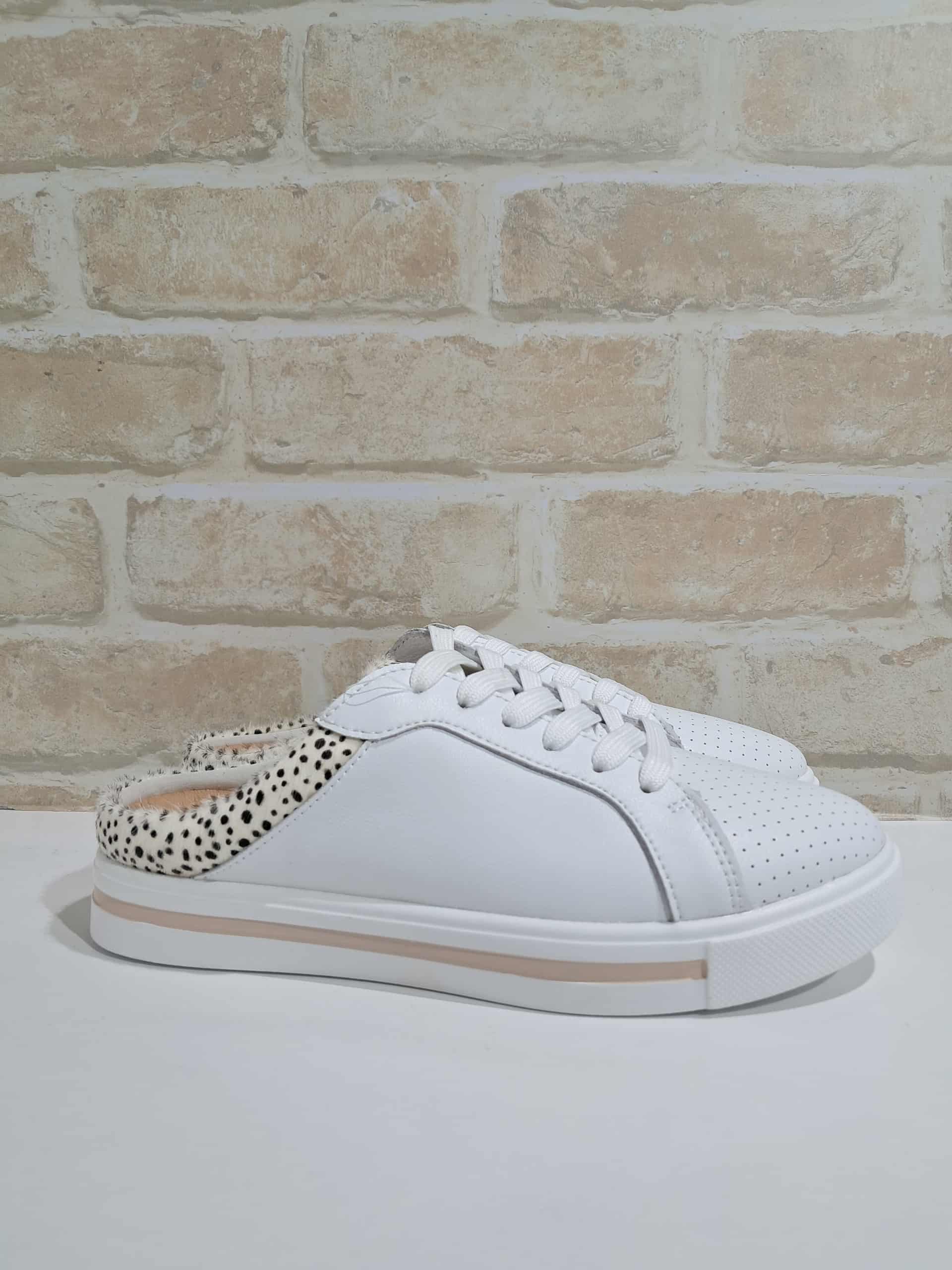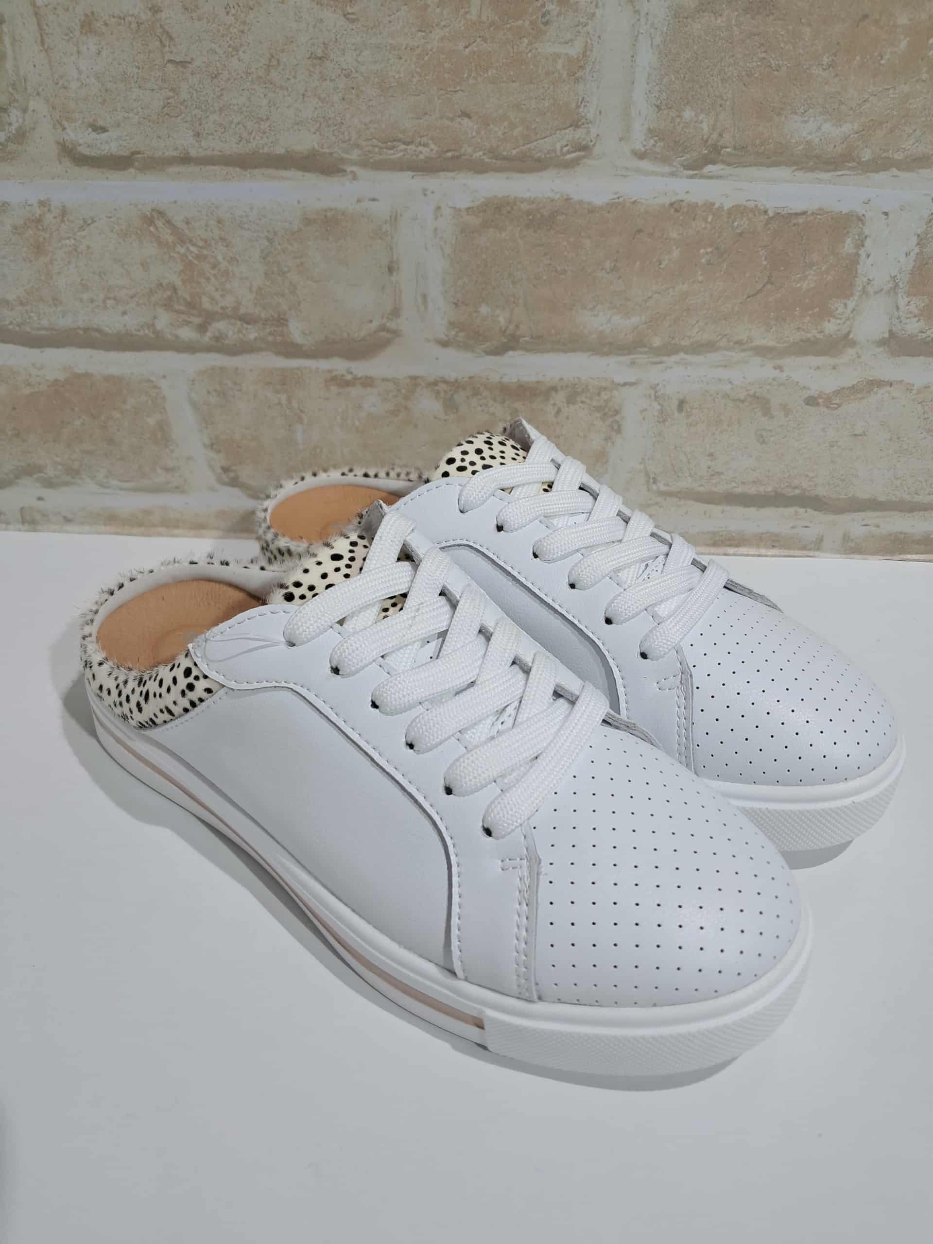 Relaxed yet stylish, the Nicky sneakers are crafted from soft white leather with a perforated upper and playful contrast heel detail. Designed for comfort and versatility, they feature a cushioned footbed and lightweight sole, perfect for easy-going, all-day wear.