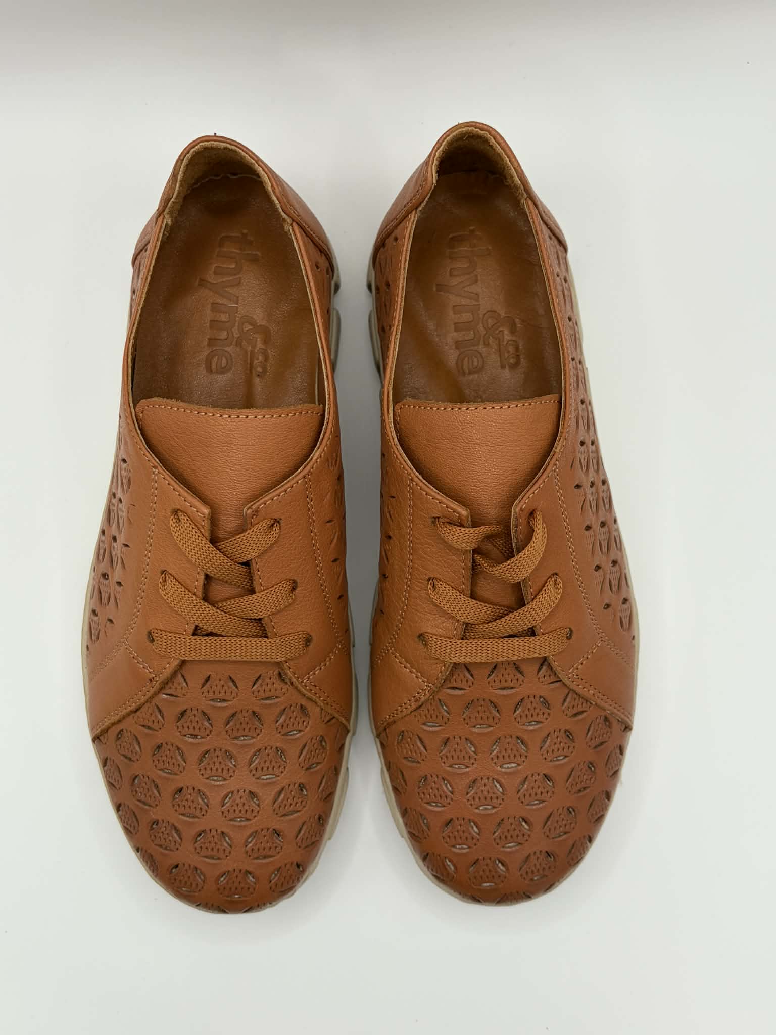 Nixie by Thyme & Co is a lightweight casual style crafted in Turkey from buttery soft leather for instant comfort. This easy lace-up design features decorative laser cut detailing for added character, while the removable footbed makes it a practical option for everyday wear and extra support if needed. Soft, flexible and easy to style, Nixie is a perfect everyday go-to.