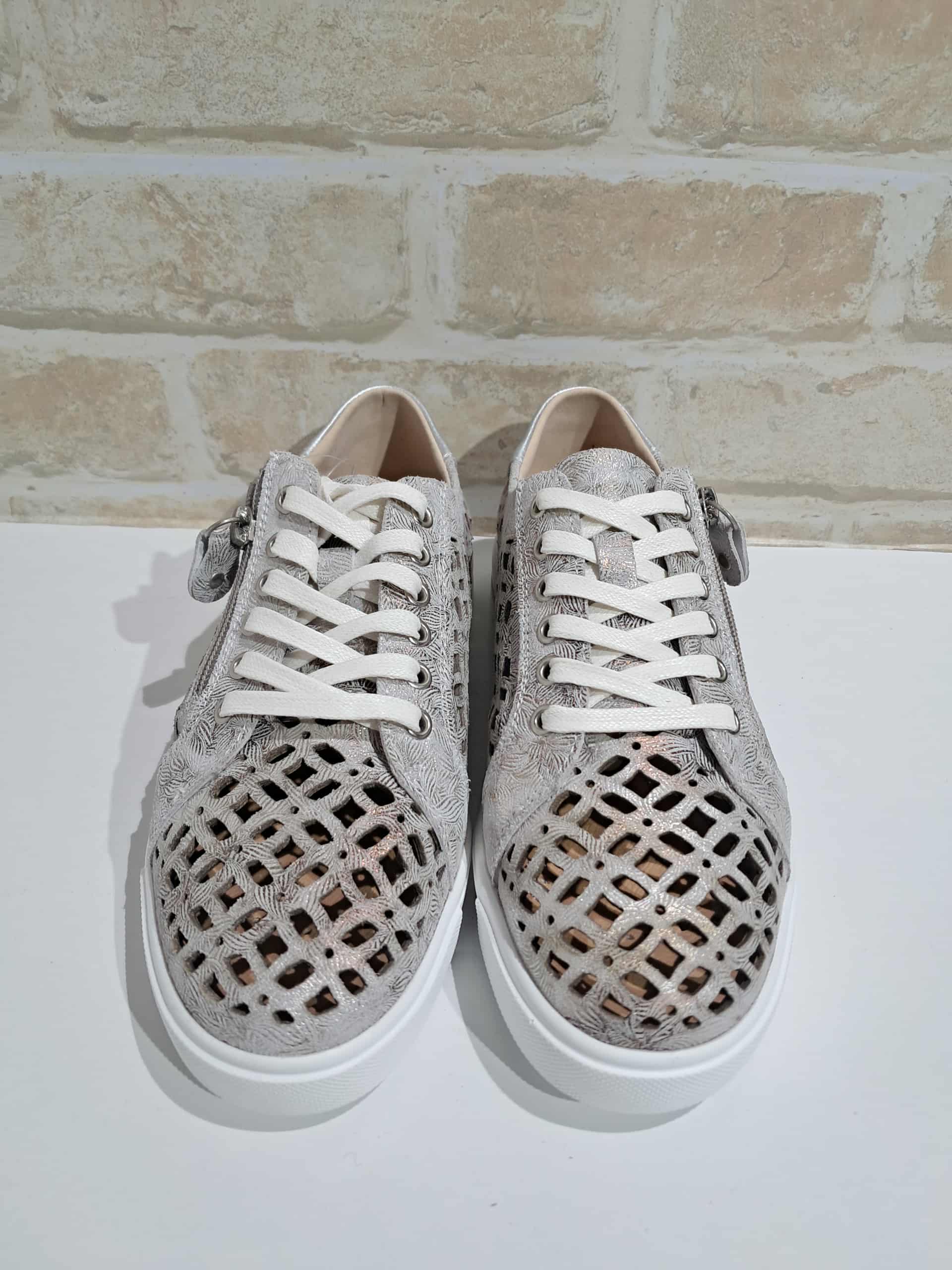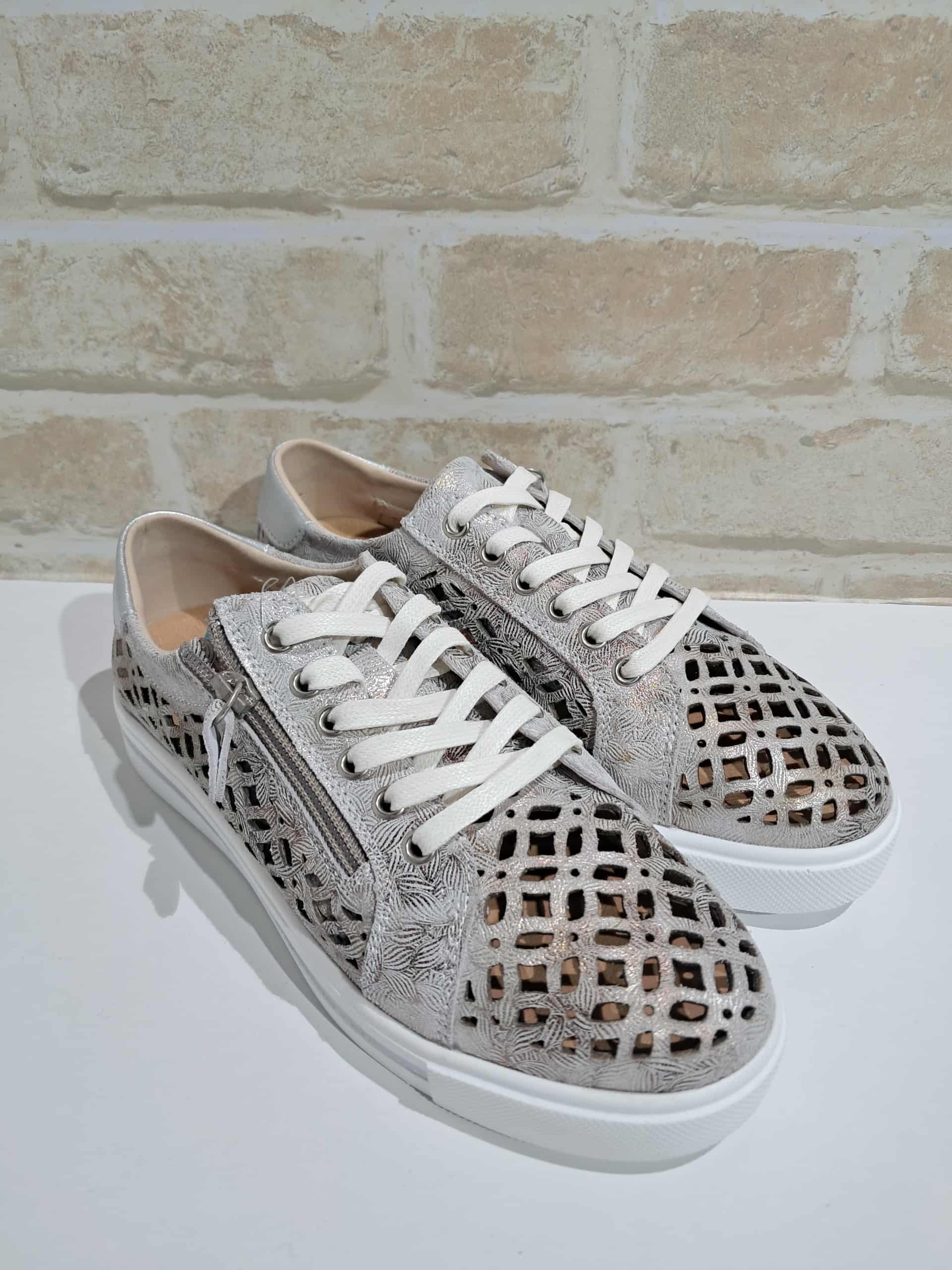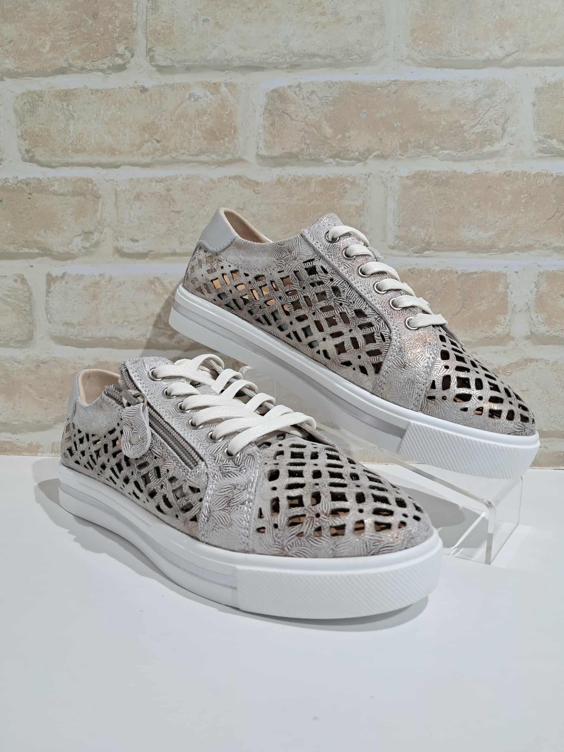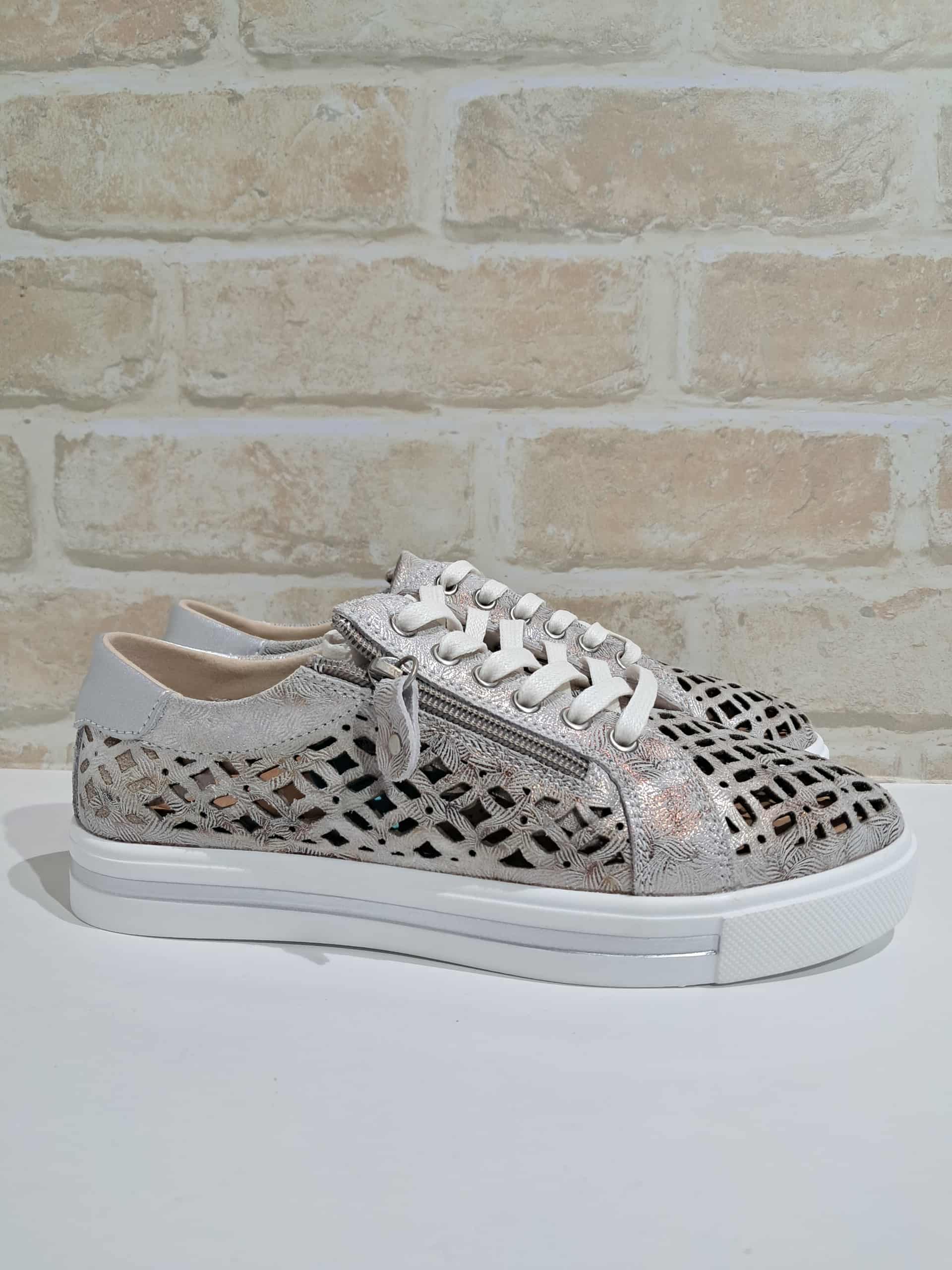 Fresh, crisp and on-trend this season, the Nova sneaker brings together everyday comfort with a fashionable cutwork design. Crafted from soft leather in white with subtle silver accents, the cut-out detailing adds polish while keeping the shoe breathable on warmer days. A functional side zip makes them easy to slip on and off, while the cushioned footbed ensures lasting comfort.