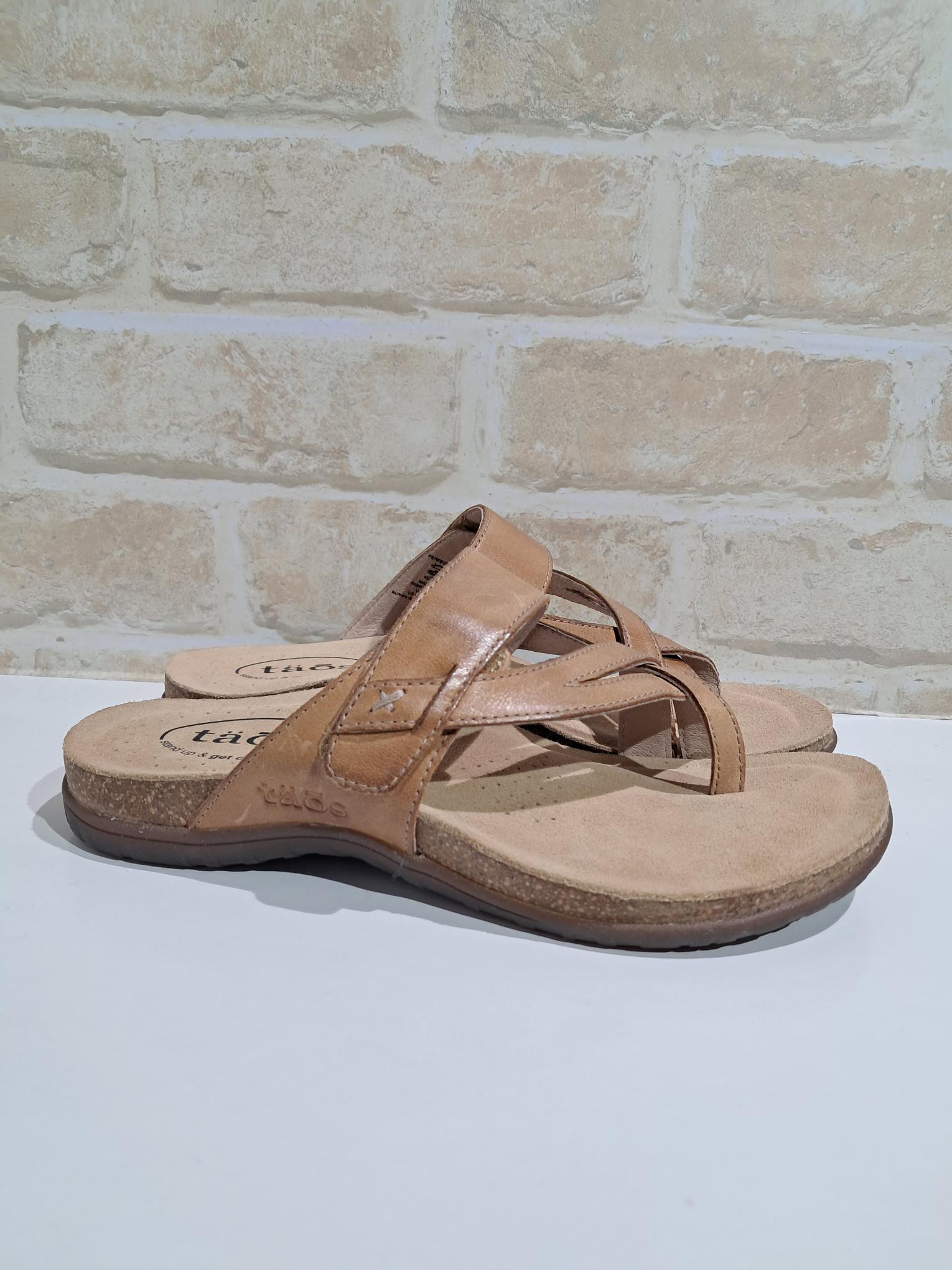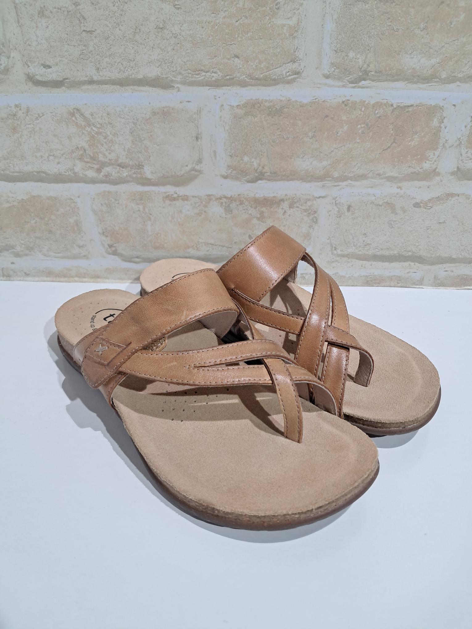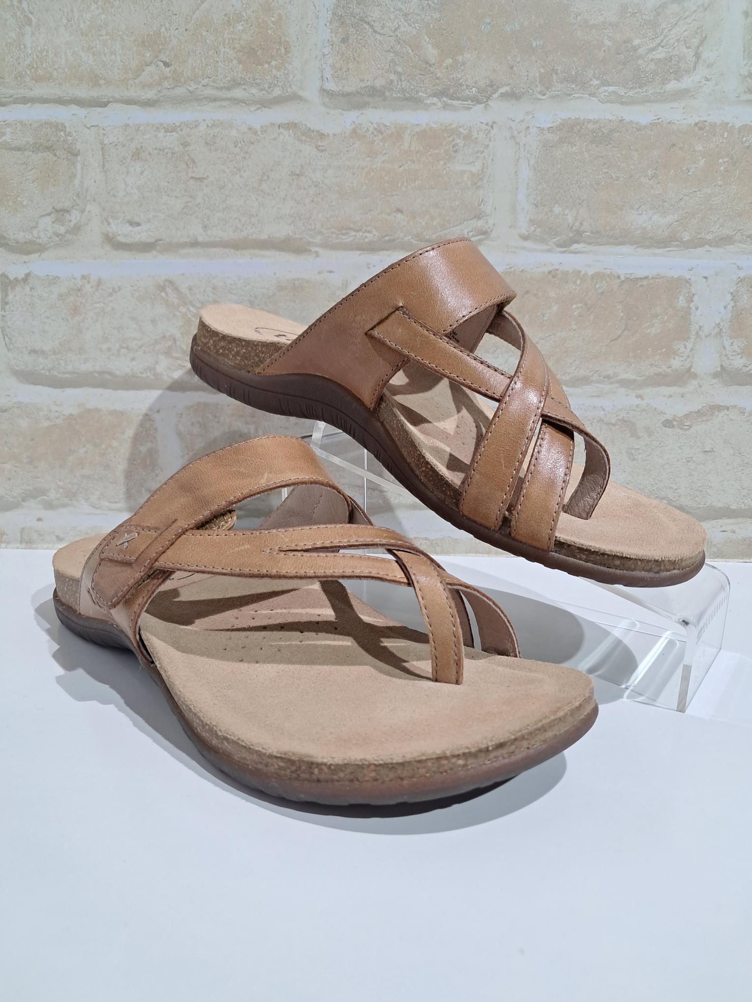 This truly is the Perfect sandal for any time anywhere! Premium leather toe loop thong sandal with strappy upper design and adjustable hook and loop strap closure. Lightweight cork-latex midsoles are topped with soft padding and lined in luxurious suede, offering exceptional arch and metatarsal support. Outsoles are flexible, durable rubber.